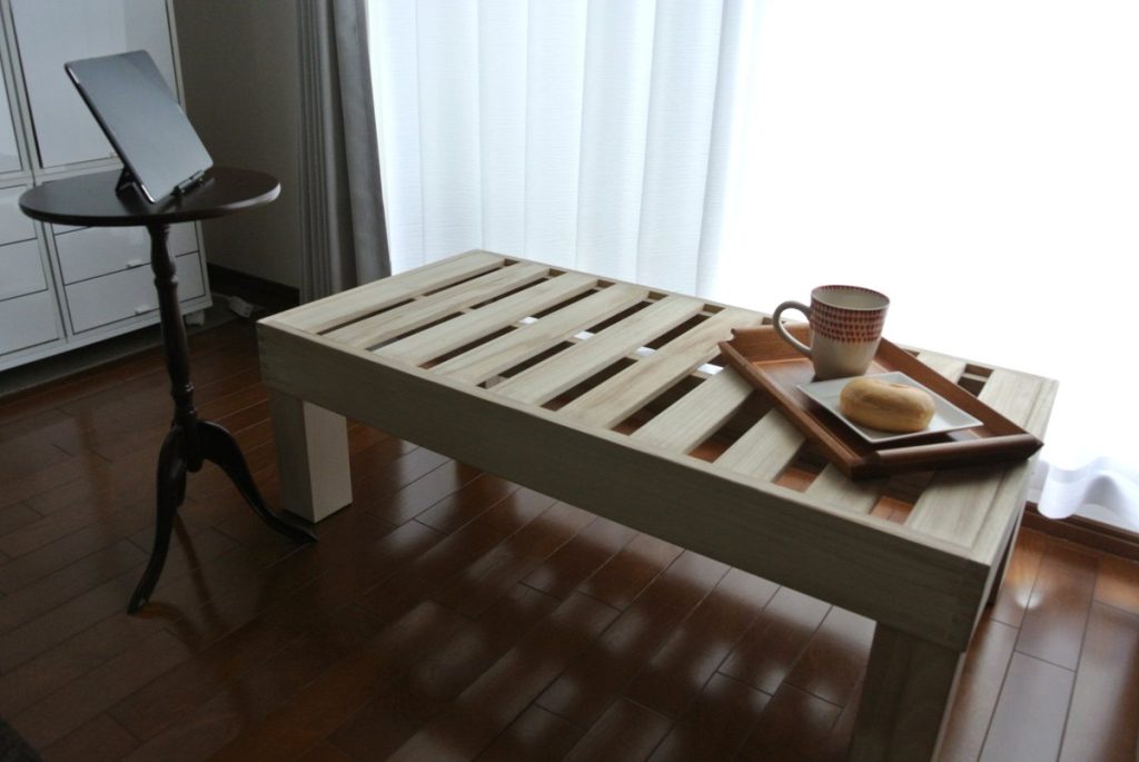 この分割式ベッドは桐製で軽い上に、四分割できるので女性でも簡単に持ち上げることができます。